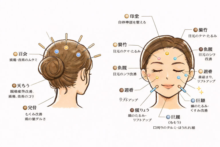顔や頭部への鍼刺激が首・肩の緊張を和らげ、全身のバランス調整にもつながります。
