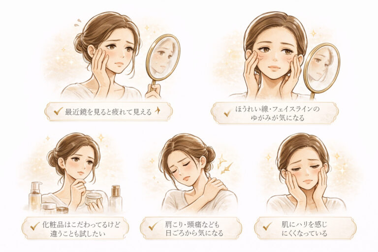顔の筋肉や血流にアプローチすることで、輪郭がすっきりし、自然な引き締まりが期待できます。