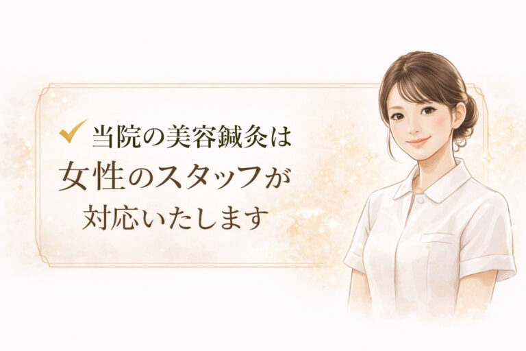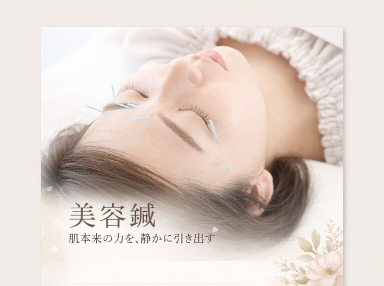 当院はエステサロンを併設し、 10年以上にわたり美容に向き合ってきた実績 があります。 肌質・年齢変化・女性特有のお悩みを熟知したそのノウハウを、 鍼灸治療の視点と組み合わせることで、 表面だけでなく内側から整える美容鍼灸 を行っています。
