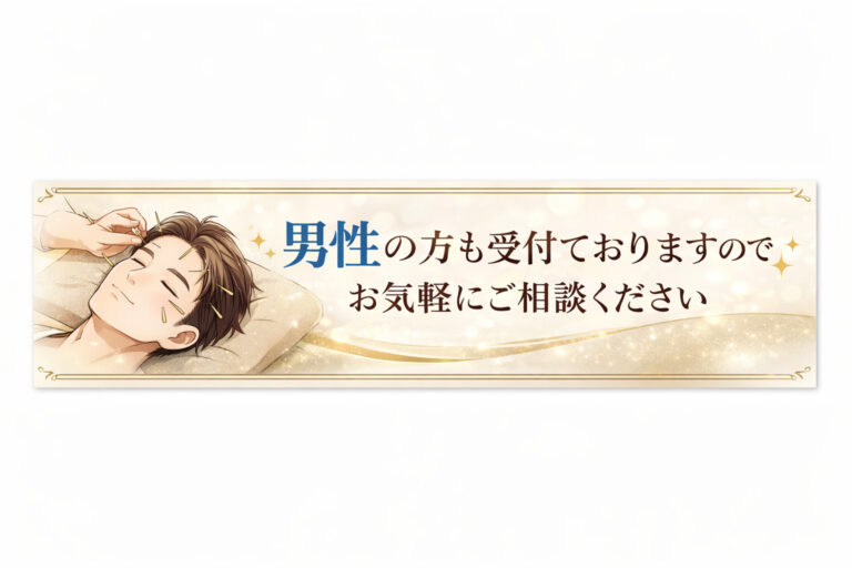 はい、受けていただけます。 男性の方でもフェイスラインや眼精疲労などのお悩みは多く、 当院では男性の方への美容鍼灸も行っています。 完全個室の施術室ですので、安心してご相談ください。